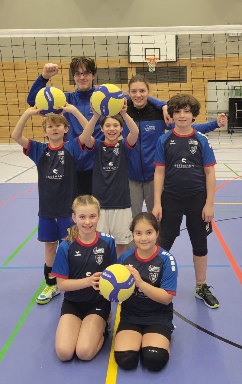Mit viel Aufregung und Vorfreude im Gepäck ging es für unsere U12 am 31.01. zur Württembergischen Meisterschaft nach Ellwangen. Dort trafen sie auf die besten Teams aus ganz Württemberg. In der Gruppenphase spielten unsere Spielerinnen und Spieler gegen Unterkirchberg und Rottenburg 1. Während sie gegen Unterkirchberg gut mitspielen konnten und einige schöne Spielzüge zeigten, war die Niederlage gegen Rottenburg 1 eindeutig. Dennoch ließ sich unsere U12 von diesem schwierigen Einstieg nicht unterkriegen! Im Spiel gegen den Ausrichter Ellwangen war unser Team einem ersten Satzgewinn sehr nah: das Spiel war von beiden Seiten umkämpft, unsere U12 hielt mit schönen Aufschlagen, guten Ballwechseln und Teamgeist dagegen. Beide Sätze gingen jedoch durch ein bisschen Glück und mehr Nervenstärke an Ellwangen (23:25, 23:25). Im letzten Spiel ging uns dann die Puste aus und die Müdigkeit vom langen Spieltag setzte ein. Es konnte nicht die beste Leistung abgerufen werden, trotzdem beeindruckte unsere U12 mit einer starken Verbesserung im Laufe des Spieltags. Unsere Trainer, Marco und Julia, sind sehr zufrieden mit den Fortschritten und sind stolz auf den Zusammenhalt der jungen Mannschaft, weiter so! Auf dem Bild: Hinten v.l.n.r.: Marco, Julia Mitte v.l.n.r.: Samy, Lewin Vorne v.l.n.r.: Jonathan, Luisa M., Luisa S. Liegend: Selina