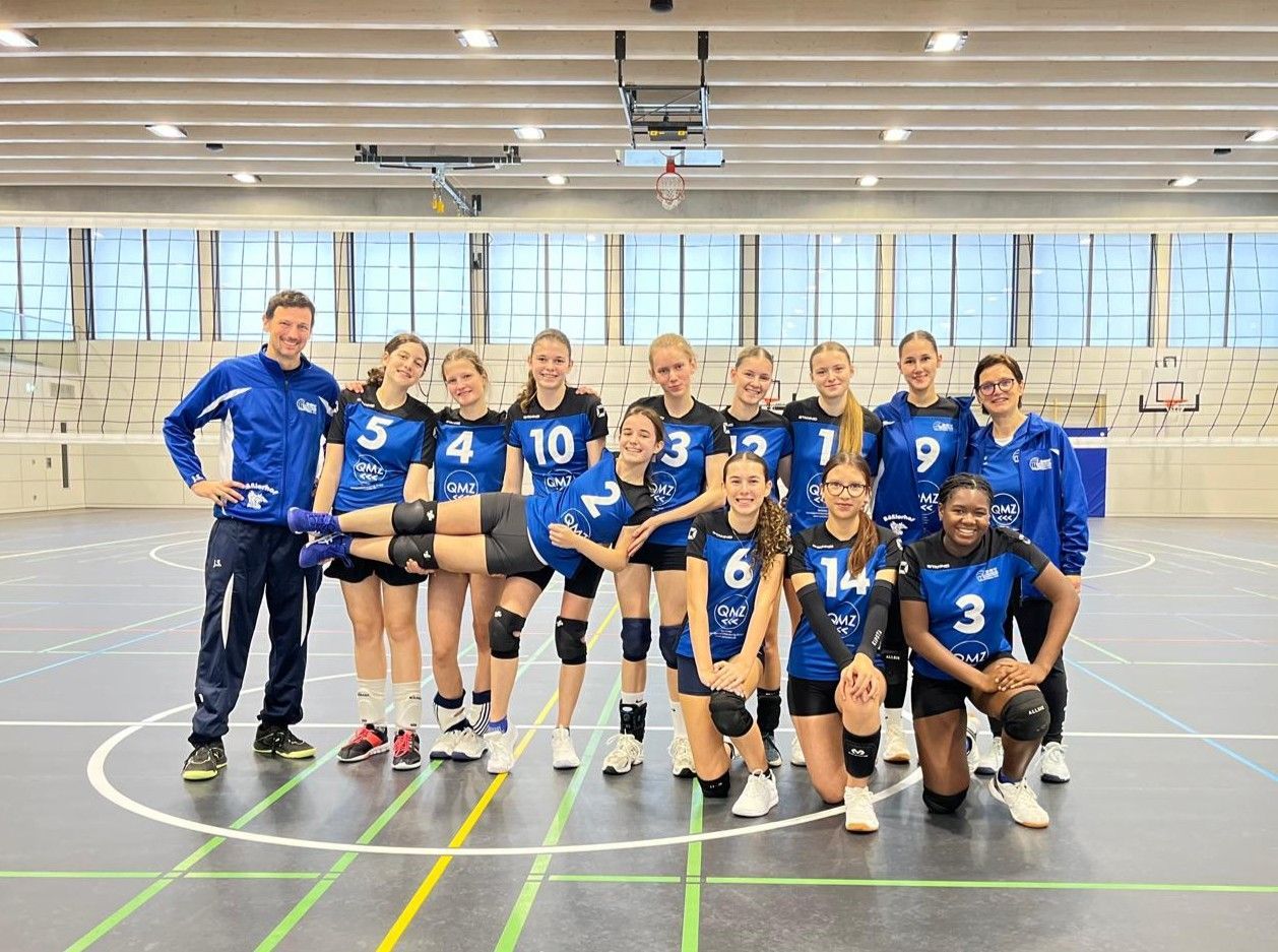 Mit viel Aufregung und Vorfreude im Gepäck ging es für unsere U12 am 31.01. zur Württembergischen Meisterschaft nach Ellwangen. Dort trafen sie auf die besten Teams aus ganz Württemberg. In der Gruppenphase spielten unsere Spielerinnen und Spieler gegen Unterkirchberg und Rottenburg 1. Während sie gegen Unterkirchberg gut mitspielen konnten und einige schöne Spielzüge zeigten, war die Niederlage gegen Rottenburg 1 eindeutig. Dennoch ließ sich unsere U12 von diesem schwierigen Einstieg nicht unterkriegen! Im Spiel gegen den Ausrichter Ellwangen war unser Team einem ersten Satzgewinn sehr nah: das Spiel war von beiden Seiten umkämpft, unsere U12 hielt mit schönen Aufschlagen, guten Ballwechseln und Teamgeist dagegen. Beide Sätze gingen jedoch durch ein bisschen Glück und mehr Nervenstärke an Ellwangen (23:25, 23:25). Im letzten Spiel ging uns dann die Puste aus und die Müdigkeit vom langen Spieltag setzte ein. Es konnte nicht die beste Leistung abgerufen werden, trotzdem beeindruckte unsere U12 mit einer starken Verbesserung im Laufe des Spieltags. Unsere Trainer, Marco und Julia, sind sehr zufrieden mit den Fortschritten und sind stolz auf den Zusammenhalt der jungen Mannschaft, weiter so! Auf dem Bild: Hinten v.l.n.r.: Marco, Julia Mitte v.l.n.r.: Samy, Lewin Vorne v.l.n.r.: Jonathan, Luisa M., Luisa S. Liegend: Selina