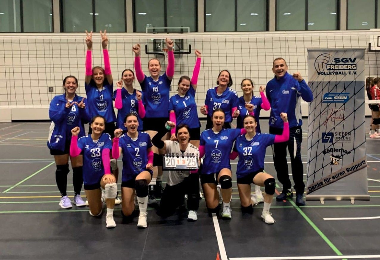 Der Start verlief holprig: Im ersten und dritten Satz besiegte sich der SGV phasenweise selbst. Viele Eigenfehler und Abstimmungsprobleme prägten das Spiel, während Fellbach mit starker Abwehrarbeit dagegenhielt. In den gewonnenen Sätzen zeigte sich jedoch die ganze Stärke der Freibergerinnen – druckvolle Aufschläge, klare Angriffe und eine konzentrierte Mannschaftsleistung führten zu einstelligen Satzgewinnen. Beim Stand von 1:2 in Sätzen drehte sich das Spiel schließlich: Maya setzte die Fellbacherinnen mit starken Aufschlagserien unter Druck und Vika glänzte durch zahlreiche Angriffspunkte. Die SGV-Herren, die zuvor selbst zwei Heimspiele bestritten hatten, blieben zum Anfeuern in der Halle und sorgten gemeinsam mit dem Heimpublikum für eine großartige Stimmung. Angetrieben von dieser Unterstützung fand unser Team zu seiner Dominanz zurück und entschied das Spiel souverän für sich.