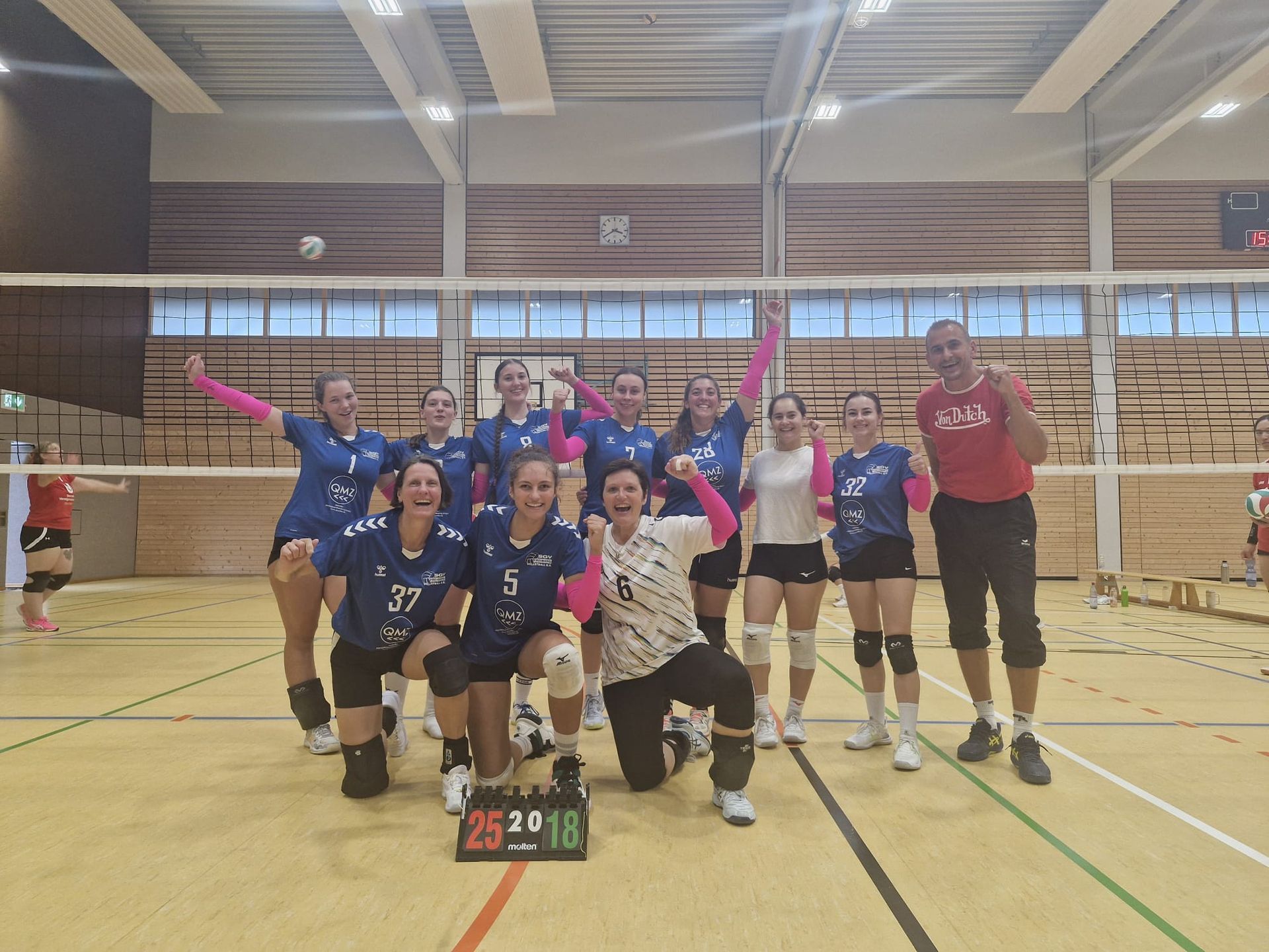 Am vergangenen Wochenende stand für die Damen des SGV Freiberg der erste Heimspieltag in der Bezirksliga an. In der gut gefüllten SpiZ traf das Team zunächst auf den SV Fellbach 3. Nach einem wechselhaften Spielverlauf konnten sich die Freibergerinnen schließlich mit 3:2 (22:25, 25:8, 18:25, 25:9, 15:4) durchsetzen. Der Start verlief holprig: Im ersten und dritten Satz besiegte sich der SGV phasenweise selbst. Viele Eigenfehler und Abstimmungsprobleme prägten das Spiel, während Fellbach mit starker Abwehrarbeit dagegenhielt. In den gewonnenen Sätzen zeigte sich jedoch die ganze Stärke der Freibergerinnen – druckvolle Aufschläge, klare Angriffe und eine konzentrierte Mannschaftsleistung führten zu einstelligen Satzgewinnen. Beim Stand von 1:2 in Sätzen drehte sich das Spiel schließlich: Maya setzte die Fellbacherinnen mit starken Aufschlagserien unter Druck und Vika glänzte durch zahlreiche Angriffspunkte. Die SGV-Herren, die zuvor selbst zwei Heimspiele bestritten hatten, blieben zum Anfeuern in der Halle und sorgten gemeinsam mit dem Heimpublikum für eine großartige Stimmung. Angetrieben von dieser Unterstützung fand unser Team zu seiner Dominanz zurück und entschied das Spiel souverän für sich.